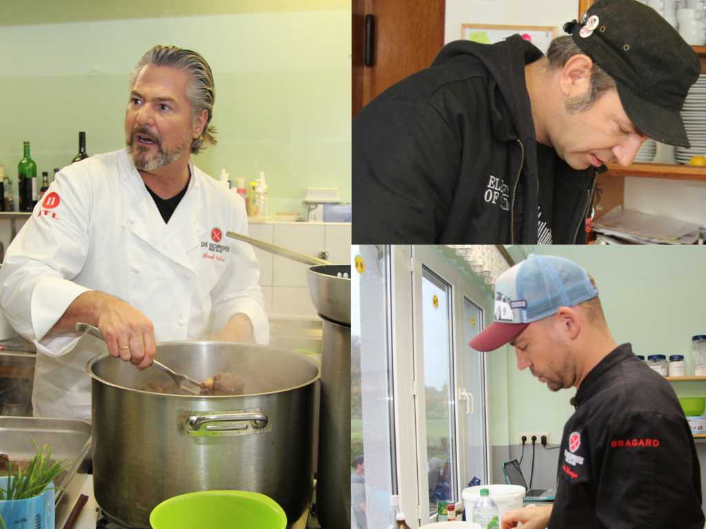 Sternekoch Frank Oehler (links), Kochprofi Ole Plogstedt, Caterer der Toten Hosen (rechts oben) und Sternekoch Andi Schweiger (rechts unten).
