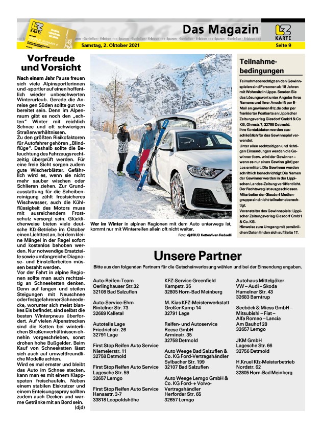 Bitte aus den folgenden Partnern für die Gutscheinverlosung wählen und bei der Einsendung angeben.