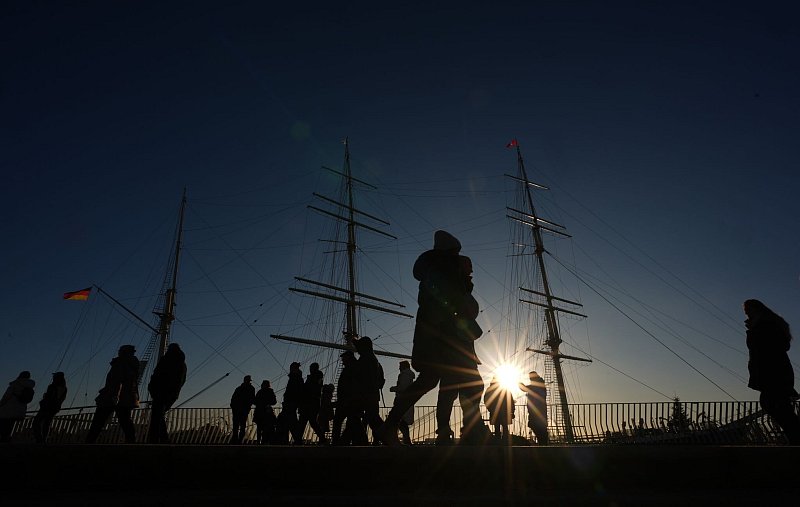 Passanten genießen das sonnige Wetter auf der Jan-Fedder-Promenade im Hamburger Hafen. - © Marcus Brandt/dpa Teilnehmer zünden während der Demonstration «Luxemburg-Liebknecht-Ehrung 2025» im Gedenken an die 1919 ermordeten Rosa Luxemburg und Karl Liebknecht ein Bengalo. - © Sebastian Gollnow/dpa Schwimmer holen bei den orthodoxen Feierlichkeiten zur Segnung des Wassers am Princess Pier das "Heilige Kreuz" aus dem Wasser. Derjenige, der es zuerst holt, soll für ein Jahr gesegnet sein. - © Joshua Stanyer/SOPA Images via ZUMA Press Wire/dpa Fahrer Simon Vitse und Beifahrer Max Delfino fahren auf der siebten Etappe der Rallye Dakar mit Start und Ziel in Al Duwadimi in der Wüste über eine Düne. - © Christophe Ena/AP/dpa Zwei Möwen landen an den Landungsbrücken im Hamburger Hafen auf einem Geländer. - © Marcus Brandt/dpa Ungewisse Zukunft der Eventin. - © Stefan Sauer/dpa Vor Sassnitz liegt der havarierte Öltanker. - © Stefan Sauer/dpa Staunen in der Eishöhle. - © Robert F. Bukaty/AP/dpa Ein Flugzeug wirft Löschmittel über dem Mandeville Canyon in Los Angeles ab. - © Brian Cahn/ZUMA Press Wire/dpa Zuschauerinnen sitzen während einer Regenunterbrechung bei den Australian Open mit einem Regenschirm auf der Tribüne. - © Frank Molter/dpa Ein Kind schaut aus einem Busfenster während einer Wahlkampfveranstaltung in Ecuador vor den bevorstehenden Wahlen am 9. Februar. - © Dolores Ochoa/AP/dpa