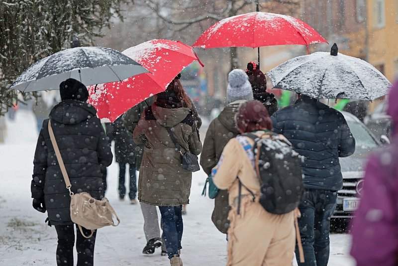 Winterwetter in Thale - Besucher gehen bei dem Faschingsumzug von dem Thalenser Carneval Club e.V. durch den Schnee. (© Matthias Bein/dpa)