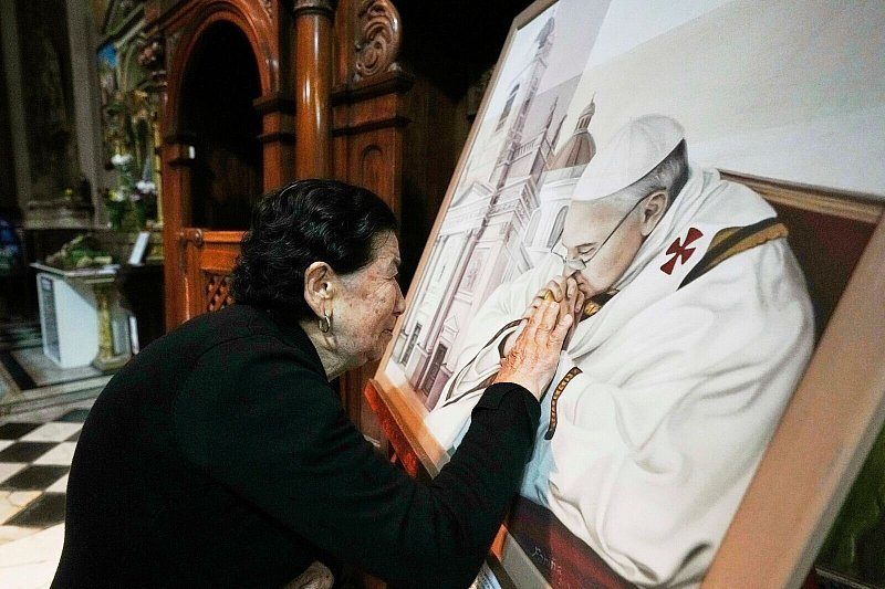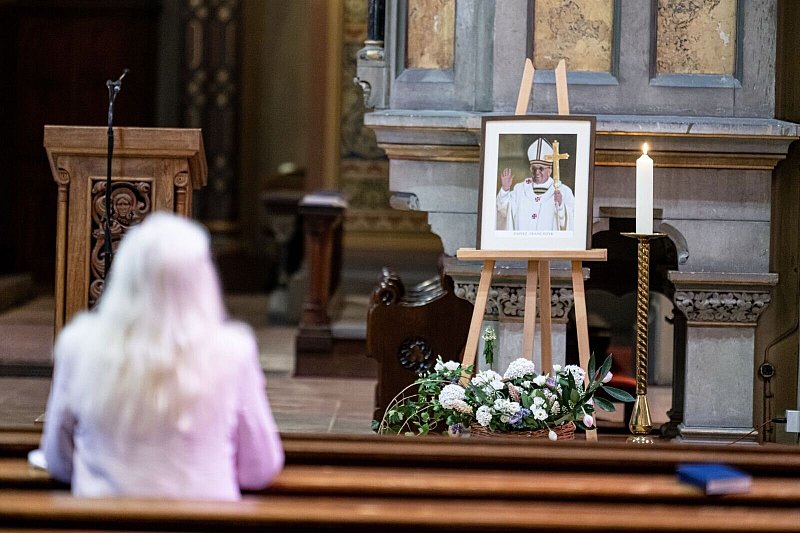 Bilder des Tages veröffentlicht am 21.04.2025 um 18:22 Uhr Trauer um Papst Franziskus in Jerusalem (© Maya Alleruzzo/AP/dpa)