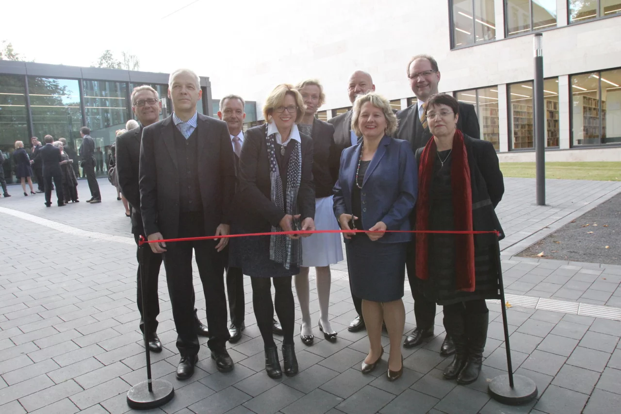 Detmold. Ein Schnitt durchs rote Band, dann ist es offiziell freigegeben: Das FORUM Wissenschaft | Bibliothek | Musik an der Hornschen Straße ist jetzt eingeweiht. „Auf diesen Tag haben alle hingearbeitet“, betonte Prof. Dr. Thomas Grosse, Rektor der Hochschule für Musik.