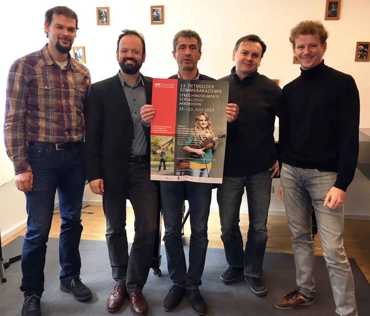 Detmold. Mit der künstlerischen Leitung von Prorektor Prof. Alexander Gebert erhält die kommende Detmolder Sommerakademie ein neues Gesicht. Neben ihm gehören vier weitere Lehrende der Hochschule für Musik zum künstlerischen Dozententeam: Stanislau Anischanka, Professor für Kontrabass, Eckard Fischer, Professor für Violine, sowie Schlagzeug-Professor Peter Prommel. Auch der junge Bratschist und Hochschulprofessor Veit Hertenstein wird erstmalig als Dozent in Erscheinung treten.