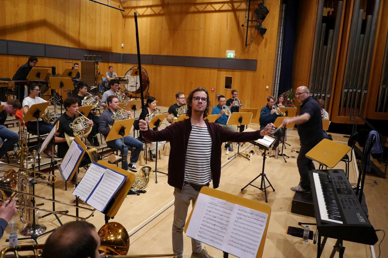 Die Noten für die Besetzung mit sechs Trompeten, acht Hörnern, darunter vier Wagnertuben, sechs Posaunen und vier Schlagzeugern haben Adam David Gal und Paul Halwax, Professor für Tuba, eingerichtet.
