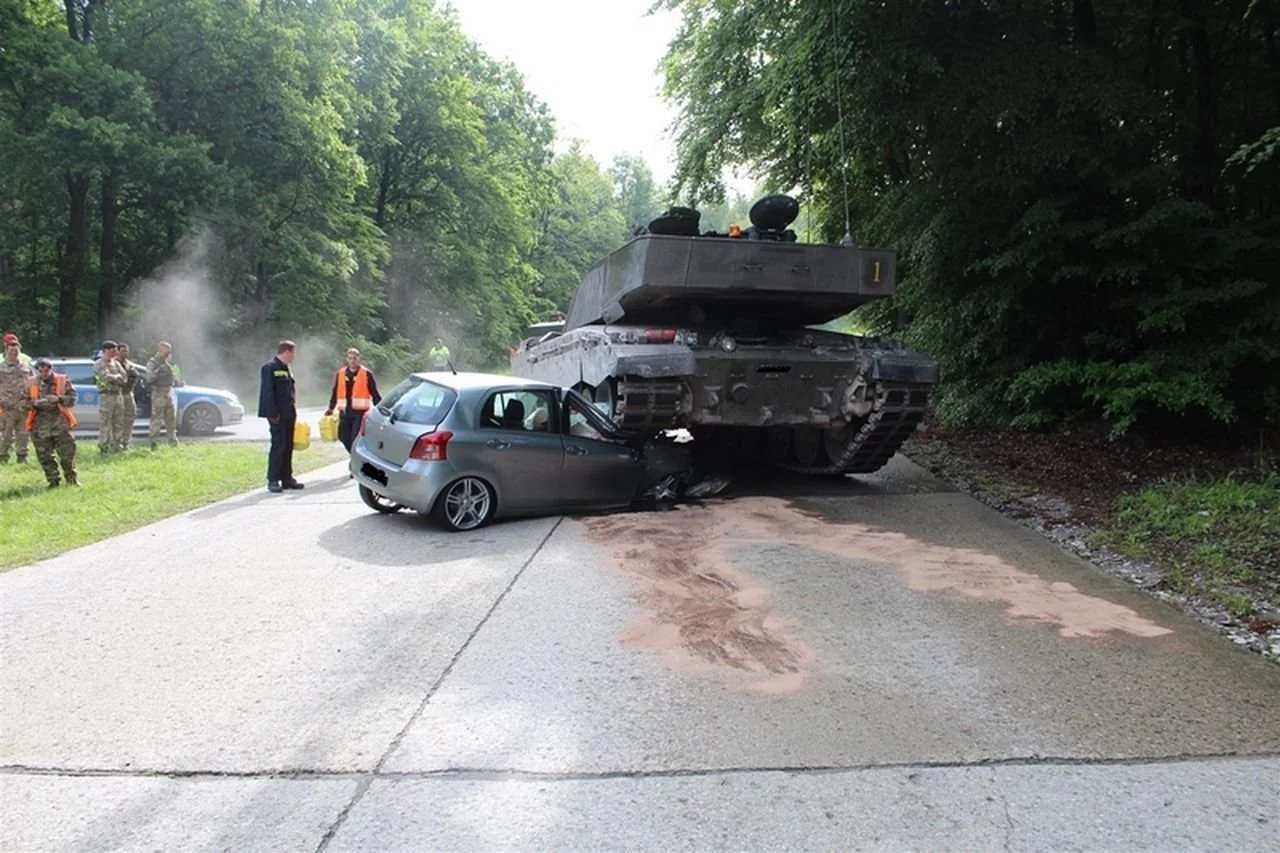 Denn der Fahrzeugführer des ersten 62 Tonnen-Panzers, ein 24-jähriger Brite, konnte nicht mehr bremsen. Sein "Challenger 2"- Panzer erfasste den Toyota und überrollte die Fahrzeugfront des Autos.