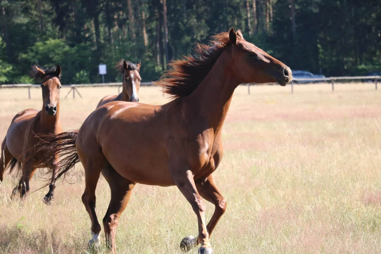 Augustdorf. Das Galoppieren der Pferde ist von Weitem zu hören. Mit einer beeindruckenden Präsenz und Eleganz erkunden die drei Senner Pferde „Venus", „Juwel" und „Unica" ihr neues Domizil, die fünf Hektar große Koppel am Furlbachtal. Viele Gäste hatten sich zum Auftrieb der seltenen Pferderasse eingefunden.
