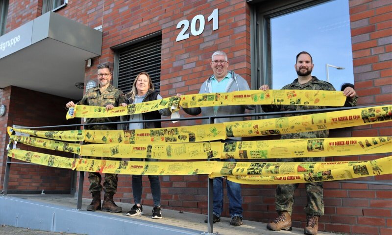 Im Einsatzland angekommen, werden die Bänder einen Platz in der Betreuungseinrichtung oder in den Unterkunftsbereichen der Augustdorfer Soldatinnen und Soldaten finden. Über 40 Meter messen die gelben Grußbänder, die nun ihre lange Reise aus dem Lipperland in die Einsatzgebiete rund um den Globus antreten.