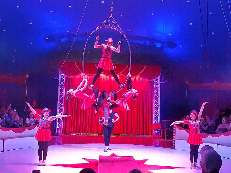 Spannung lag in der Luft, als die Drahtseilartisten die Manege betraten. In großer Höhe balancierten die jungen Akrobaten mit erstaunlicher Präzision über das dünne Seil. Die Zuschauer hielten den Atem an. Mit beeindruckender Leichtigkeit und viel Mut schwangen die Kinder hoch oben in der Luft auf dem Trapez und zeigten vielfältige Figuren und atemberaubende Posen. Kopfüber, nur mit den Füßen haltend, schwangen die mutigen Artisten hin und her. Tosender Applaus belohnte ihre kunstvollen Darbietungen. Eine besonders ästhetische Performance boten die Kinder am Luftring. Anmutig und mit viel Körperbeherrschung drehten und wendeten sie sich in der Luft, was das Publikum mit staunenden Blicken verfolgte.