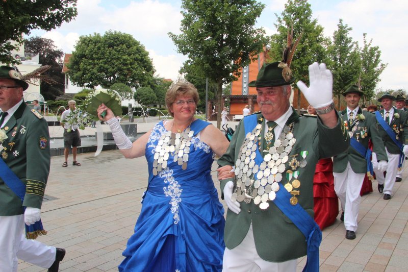 Die Vorgänger-Majestäten, Sascha Ruge und Britta Ruge-Koring, können ihre Festkleidung gleich anlassen – sie bilden mit Michael Stute und Silvana Hanke sowie Hermann und Ingrid Begemann die Thronpaare der Amtszeit 2016-2018.