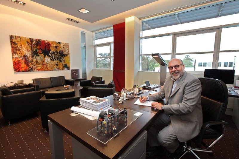 Die Arbeit der „Technikbegeisterten aus der Salzestadt", wie er es nennt, sei in aller Welt gefragt, fügt er hinzu und zeigt aus seinem Bürofenster auf die Fahnenmasten im Innenhof der Firma, die jeden Tag mit anderen Flaggen geschmückt sind. „Dann weiß jeder Mitarbeiter, dass wir Kunden aus den jeweiligen Staaten im Betrieb haben. Wir haben teilweise so viel Besuch, dass die Masten nicht ausreichen", sagt Sollich und setzt sich auf den Ledersessel in seinem 35 Quadratmeter Büro, das vor acht Jahren ein Innenarchitekt mit Sollichs Ehefrau eingerichtet habe. „Die haben ausgesucht und ich habe bezahlt", lacht der zweifache Vater.