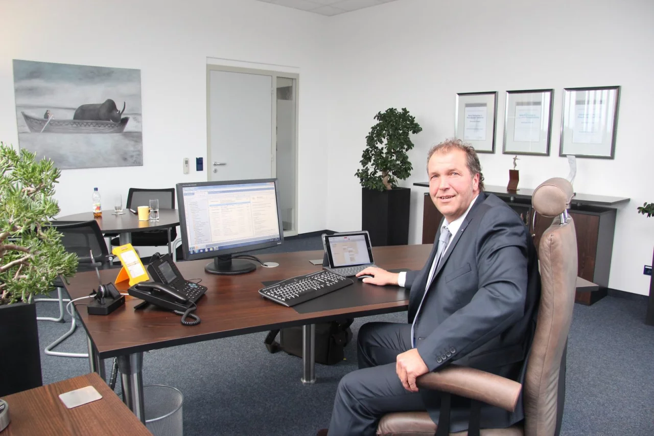 „Wir haben uns vor einem Jahr entschlossen, von viel Papier auf ein papierloses Büro umzustellen", erklärt er. Seitdem erledigt er seine Korrespondenz konsequent per PC oder Tablet. Das hat auch den Vorteil, dass er seine Unterlagen immer handlich bei sich hat. Angesichts der Tatsache, dass er 50 Prozent der Arbeitszeit auf Terminen und Sitzungen in Deutschland und darüber hinaus verbringt, ein großer Vorteil. So ist er unter anderem Sprecher der Dachser-Niederlassungsleiter in Europa.