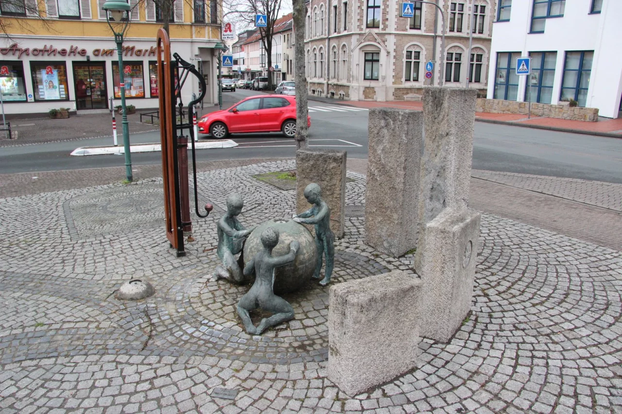 Demnach sei die Schwengelpumpe „eine gelungene Ergänzung für das bestehende Ensemble, das auch in Schötmar Wasser erlebbar macht", urteilt das CDU-„Begrüßungskomitee" und sieht eine weitere Attraktivierung des Marktes.