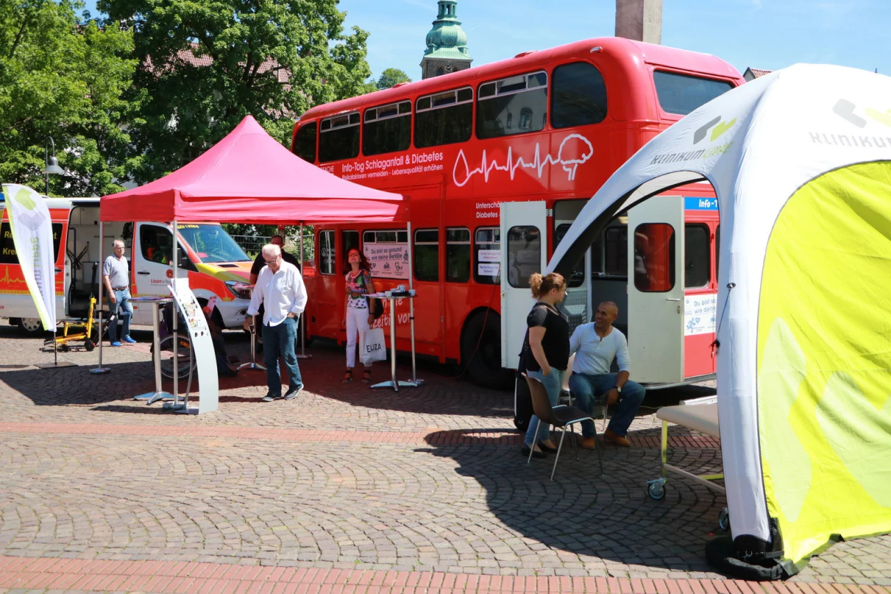 Das Schlaganfallmobil hat am Mittwoch Station in Bad Salzuflen gemacht. „Im vergangenen Jahr waren wir bereits in Lemgo und Detmold", sagt Prof. Dr. Christoph Redecker. Der Leiter der Neurologie weiß, wie wichtig es ist, über Schlaganfälle und ihre Folgen aufzuklären: „Wir haben etwa 1000 Fälle im Jahr in Lippe. Gut 15 bis 20 Prozent können wir mit einer Lyse-Therapie behandeln." Dabei werden Medikamente verabreicht, die Blutgerinnsel auflösen. Damit die Behandlung anschlagen kann, muss sie aber rechtzeitig passieren.