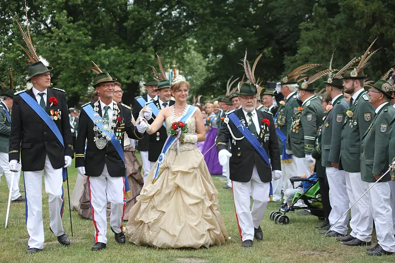Der anschließende prächtige Festumzug durch die Innenstadt wurde von den Musikkapellen des Bundesschützen Gardemusikkorps Schwaney, der Blaskapelle Marpetal, dem Fanfarenzug Blomberg sowie dem Spielmannszug Bega begleitet. Abends übernahm im Festzelt das Pop-Duo „WIR" die Regie, das zusammen mit der Band „Lipperland-Express" für ausgelassene Partystimmung und eine lange Feiernacht sorgte.