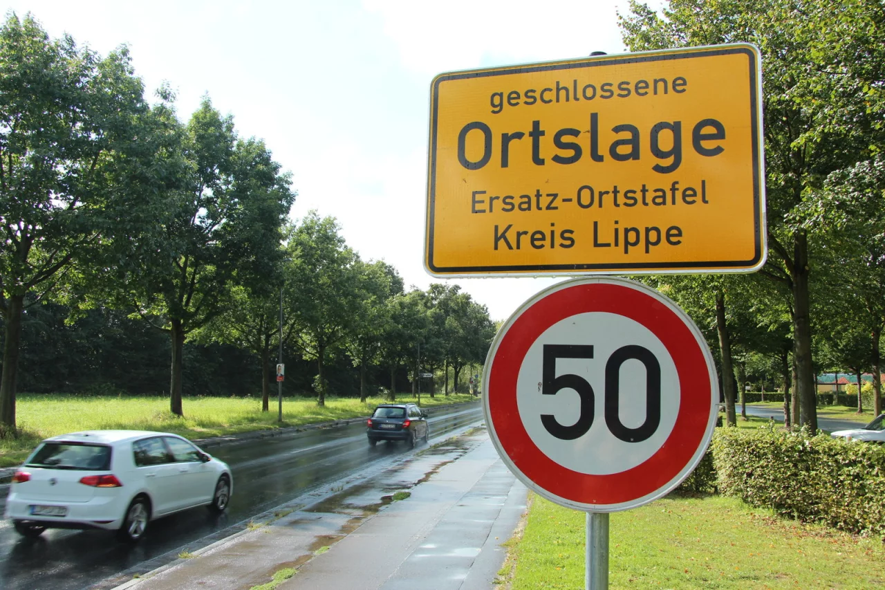 Nun steht an Stelle der ursprünglichen Ortstafel ein Übergangsschild des Kreises als Ersatz. Darunter ist ein Tempo-50-Schild angebracht. Zwar markieren Ortstafeln Beginn und Ende geschlossener Ortschaften und regeln damit im Normalfall auch die Geschwindigkeitsbegrenzung. Aber da es sich bei dem Ersatzschild nicht um eine offizielle Ortstafel nach der Straßenverkehrsordnung handle, wurde laut Benjamin Kramer zusätzlich das Tempolimit darunter angebracht.„Das ist eine reine Vorsichtsmaßnahme", sagt er. Er erwartet das neue Ortsschild in der kommenden Woche. Das werde dann den gleichen Schriftzug wie das alte Schild tragen: Aspe, Stadt Bad Salzuflen, Kreis Lippe. Dann könne auch das Tempo-50-Schild wieder weichen.