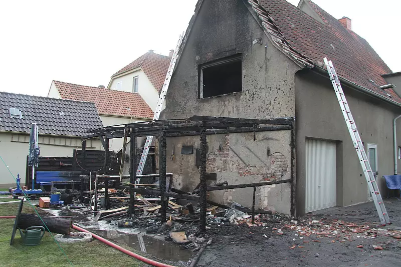 Der Brand brach aus noch ungeklärter Ursache im Wintergarten des Wohnhauses aus. "Zunächst war nur ein brennender Wintergarten gemeldet, als wir ankamen, stand dieser jedoch bereits in Vollbrand", berichtete Einsatzleiter André Schüler. Die Flammen breiteten sich ebenfalls auf das Haupthaus aus. Beim Versuch, das in der Nähe geparkte Auto zu retten, wurde der Hausbesitzer verletzt . Er kam mit leichten Verbrennungen ins Krankenhaus.