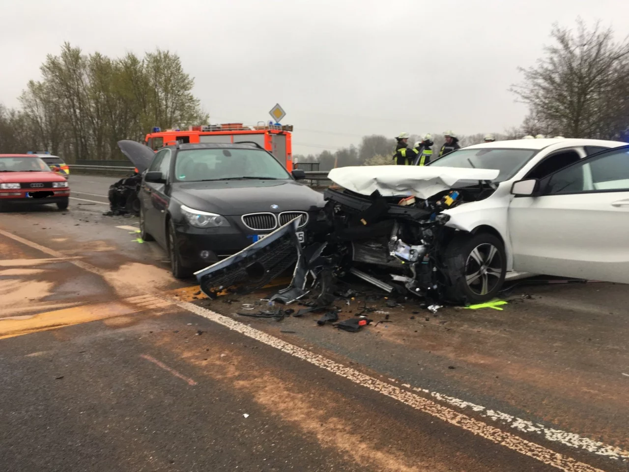 Nach ersten Informationen der Polizei wollte eine 39-Jährige Gütersloherin mit ihrem Golf von der B 239 nach links auf die Ostwestfalenstraße in Richtung Bielefeld einbiegen. Dabei übersah sie den Mercedes eines 20-Jährigen Salzuflers, der in Richtung Lemgo unterwegs war. Beide Wagen prallten aufeinander und schleuderten über die Straße. Dort trafen sie auf zwei Autos, die sich auf der Linksabbiegerspur in Höhe Messezentrum eingeordnet hatten.