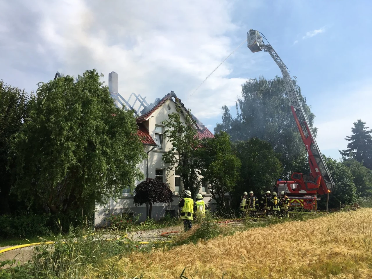 Unwetter zogen am Dienstag mit Regen, Hagel und Sturmböen über Lippe hinweg. Als das Gewitter Bad Salzuflen erreichte, kam es zu der Katastrophe. Durch das Feuer, das von einem Blitzschlag verursacht wurde, brannte der Dachstuhl komplett aus. Dabei entstand laut Mitteilung der Polizei ein Sachschaden in Höhe von mindestens 200.000 Euro. Das Haus ist nicht mehr bewohnbar.