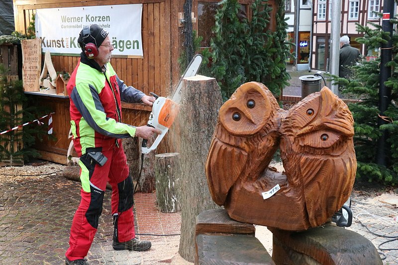 Bad Salzuflen. Wenn Werner Korzen (67) durch den Wald geht, dann sieht er keine Fichten, Eichen oder Lärchen. Er sieht Eichhörnchen, Wildschweine, Eulen und Adler. Werner Korzen ist Holzschnitzer – und die Ideen zu seinen realistischen Holz-Tierfiguren hat er meist schon, wenn er die unterschiedlich gewachsenen Baumstämme betrachtet. Seit elf Jahren steht er alljährlich auf dem Weihnachtstraum und erzeugt mit seinen Kettensägenarbeiten und den Holzfiguren große Augen bei den Besuchern.