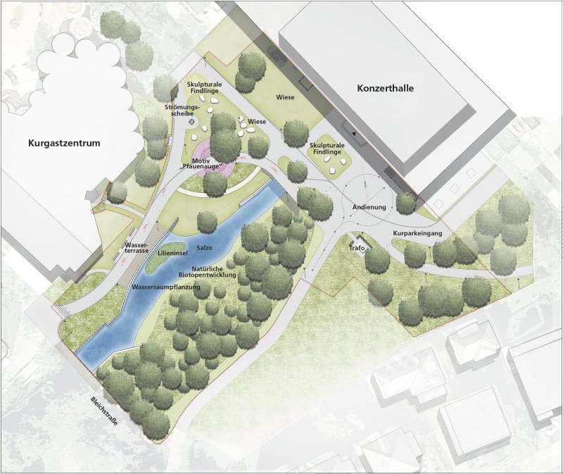 Bad Salzuflen. Noch dieses Jahr sollen die Arbeiten zur Neugestaltung des Bereiches zwischen dem hinteren Kurparkeingang, der Bleichstraße sowie dem Kurgastzentrum starten – die Maßnahme ist wie berichtet der letzte Baustein im Förderprogramm „Historischer Kurbereich“. Der Baubeschluss soll am kommenden Dienstag im Bauausschuss fallen. Zuvor müssen die Mitglieder aber noch einer weiteren Sanierung zustimmen.