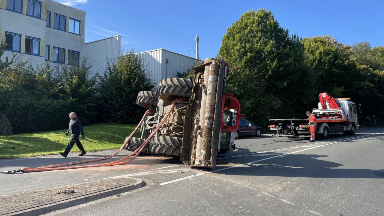 Aufgrund der Seitenlage des Fahrzeugs kam es zu einer massiven Rauchentwicklung, da mutmaßlich Motoröl in den heißen Turbolader gelaufen war. Die Feuerwehr stellte den Brandschutz sicher und sperrte die Unfallstelle gegen den laufenden Verkehr ab, heißt es weiter. Eine Fachfirma richtete den Traktor wieder auf und schleppte ihn anschließend ab. Nach rund zweieinhalb Stunden konnte die Sperrung der Bielefelder Straße wieder aufgehoben werden. Zur Schadenshöhe und Unfallursache hat die Polizei die Ermittlungen aufgenommen. Die Freiwillige Feuerwehr Bad Salzuflen war mit rund 30 Einsatzkräften vor Ort.