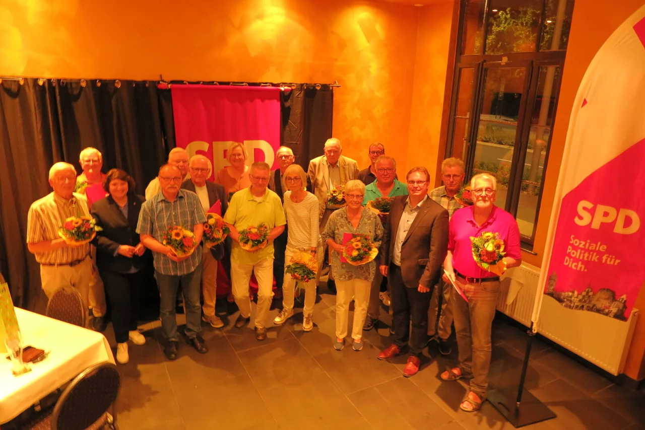 Höhepunkt war eindeutig die anschließende Ehrung von langjährigen Mitgliedern. Seit 2020 waren diese wegen Corona in Präsenz ausgefallen. Mit persönlichen und wertschätzenden Worten, Blumensträußen und Urkunden wurden die Ehrungen durch Dennis Maelzer, Clemens Welslau und Ellen Stock vorgenommen: für 25-jährige Mitgliedschaft Birgit Scheltmann, Udo Multmeier, Nicole Adam-Stukenbrok, Renate Pisulla und Eduard Böger, für 40-jährige Mitgliedschaft Karl-Heinz Hielscher, Peter Benthin, Reinhard Bröker, Gustav-Adolf Siek, Angela Helmig-Engler, Karola Pleßmann, Reinhard Engler, Gerda Klüber, Martin Scheer, Rüdiger Schlatter und Silke Simon, für 50-jährige Mitgliedschaft Edmund Welslau, Hendrik Abeler, Ernst Linneweber, Rolf Steinhoff, Beatrix Andres, Liselotte Kanne, Heinrich Simmes, Willi Slotta, Bartholomäus Hegerich, Erich Hartema, Gerda Selle und Karl Gläßner, für 60-jährige Mitgliedschaft Ilse Fricke und Alfred Regber sowie für 65-jährige Mitgliedschaft Richard Reipke und Kurt Husemann. Einige Jubilare fehlten und hatten sich entschuldigen lassen.