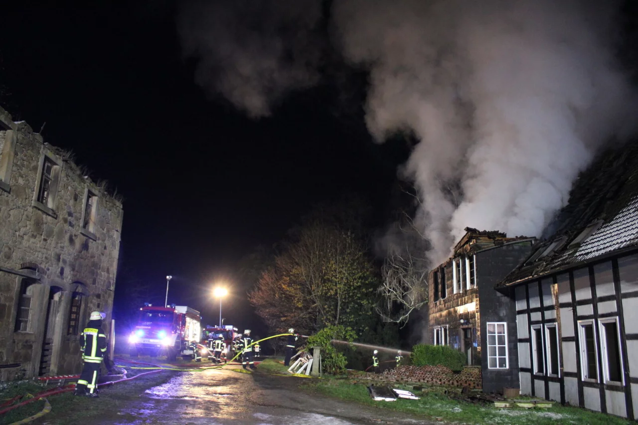 Die Freiwillige Feuerwehr Bad Salzuflen wurde gegen 3 Uhr am frühen Montagmorgen in die Straße „Sundern" gerufen. Nachbarn hatten den Brand entdeckt und den Notruf gewählt. Beim Eintreffen der ersten Feuerwehrfahrzeuge vor Ort schlugen bereits Flammen aus dem Dach. Menschen waren zu dem Zeitpunkt nicht mehr im Gebäude.