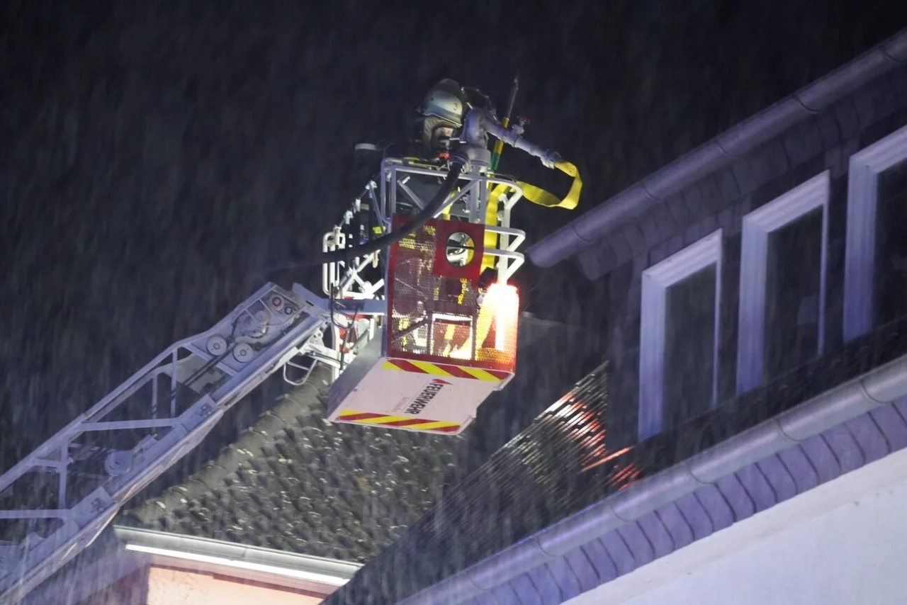 Entdeckt worden war das Feuer von Bewohnern eines Mehrfamilienhauses am Gröchteweg als Glimmen in der Dachrinne; sie riefen um kurz nach Mitternacht die Feuerwehr. Die anrückenden hauptamtlichen Kräfte der Bad Salzufler Wehr erhöhten die Alarmstufe nach der ersten Begutachtung direkt auf Stufe 3: „Dachstuhlbrand“.