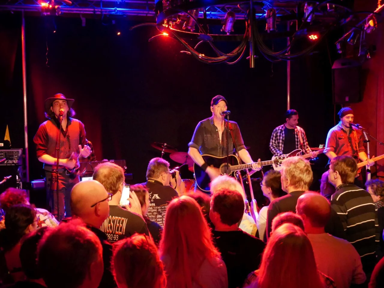 Verzerrte Rock-Riffs von Leadgitarrist Thomas Spindeldreher eröffneten das melancholische Stück „Downbound Train“ aus dem Antikriegs-Album „Born in the U.S.A.“, mit dem Springsteen 1984 zum Superstar wurde. Der eingängige Rhythmus übertrug sich unmittelbar auf die Gäste, die mittanzten. Keyboarder Moritz Schuster leitete den romantischen Titel „Because The Night“ ein, den viele Gäste mitsangen. Pierre de Stefano bereicherte den Song „The Ties That Bind“ aus dem Doppelalbum „The River“ von 1980 mit einem Solo am Saxofon. „Der Sänger hat eine verblüffend authentische Stimme“, lobte ein Gast den stimmgewaltigen Kölner, der sein Publikum einige Male anfeuerte.