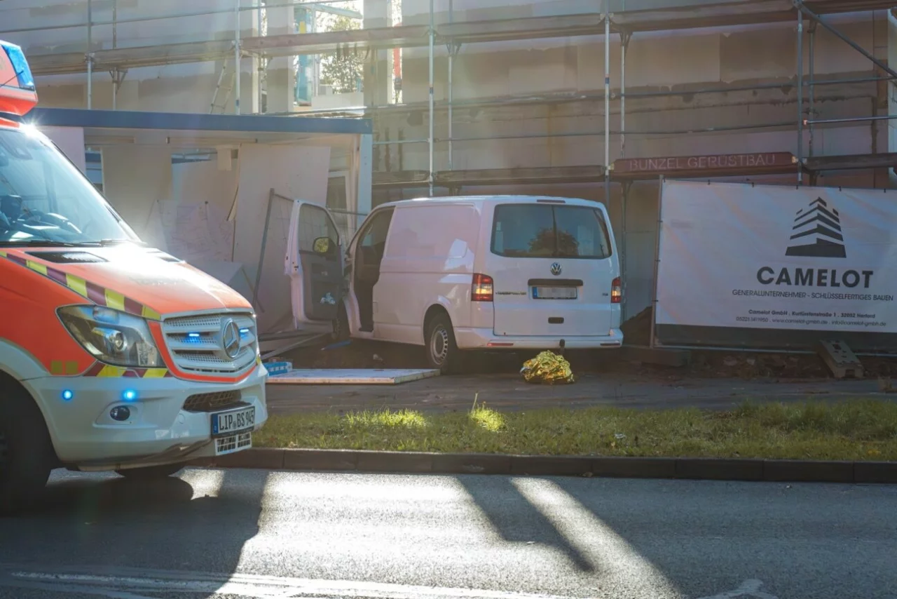Bad Salzuflen-Lockhausen. An der Kreuzung Schötmarsche Straße/Ahmser Straße/Leopoldshöher Straße in Lockhausen Straße ist gestern Vormittag ein Transporter aus Bielefeld von der Straße abgekommen und in einen Baucontainer gefahren. Dort wird das Grundstück des ehemaligen Königskrugs neu bebaut. Der Verkehr wurde einspurig an der Unfallstelle vorbei geführt. Rettungswagen und Notarzt sowie die Polizei waren vor Ort. Zum Fahrer und zur Frage, ob dieser verletzt wurde, konnte die Polizei zunächst keine Angaben machen.