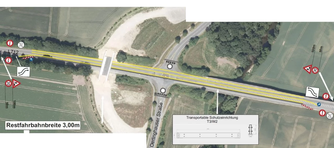 Damit der Verkehr auf der Ostwestfalenstraße weiterfließen könne, werde zuerst die südliche Fahrbahnhälfte gesperrt. Die Fahrspuren in beide Richtungen werden in dieser Zeit auf die nördliche Fahrbahnhälfte verschwenkt. Nach etwa vier Wochen wechseln Sperrung und Fahrspuren die Seite und die Fahrbahndecke auf der nördlichen Hälfte wird erneuert.