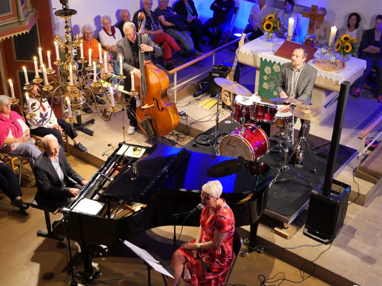 Das Jazzquartett „Take Four“ bestand somit aus der bezaubernden Sängerin Katja Assauer, dem dynamischen Schlagzeuger Michael Marseille, dem virtuosen Pianisten Matthias Kämper und dem groovenden Bassisten Michael Waechter. Mit Klassikern wie „All of Me“, „Fly Me to the Moon“ und „One Note Samba“ bewiesen die vier, dass sie sowohl technisches Können als auch ein tiefes Verständnis für die emotionale Tiefe vieler Musikstile besitzen.