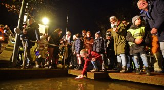 Traditionell setzen die Kinder am Ende des Umzugs kleine, einfache Holzboote mit einem Teelicht am Salzhof auf die Salze. „Ein Licht für die Kinder dieser Welt“, so heißt diese Aktion seit Jahrzehnten in Bad Salzuflen. Im Vorfeld können die Schiffchen ab sofort gegen eine Spende im Fachgeschäft von Tanja Göner, Dammstraße 14, erworben werden.