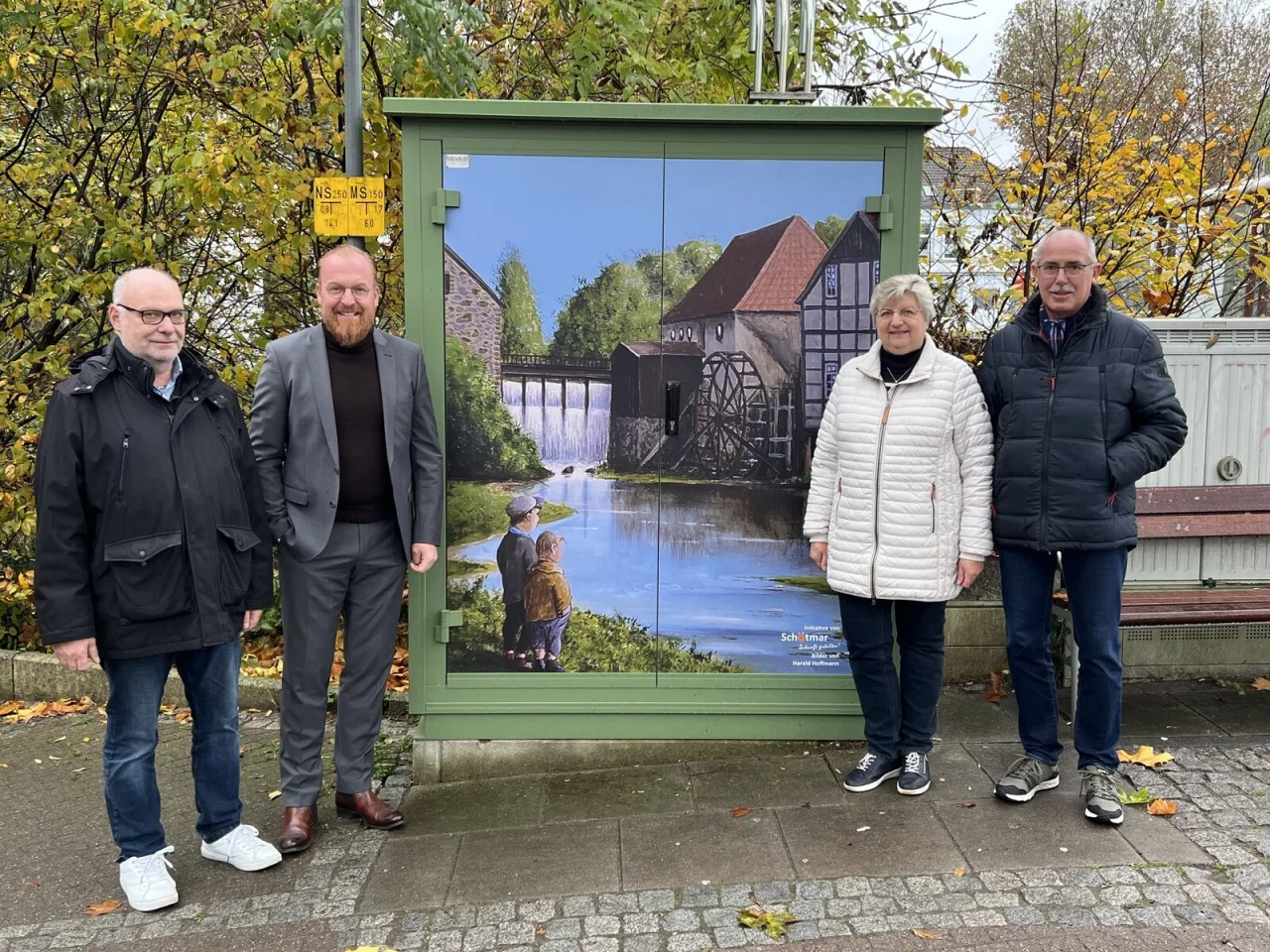 „Auf Initiative des Vereins sind im Herzen von Schötmar 15 Strom- und Gasstationen der Stadtwerke mit Bildern geschmückt worden. Die lokalen Motive hat Künstler Harald Hoffmann gemalt und kostenlos zur Verfügung gestellt“, schreiben die Stadtwerke in einer Pressemitteilung. Die Bilder wurden als Beklebung oder als Platten auf die Stationen angebracht und zeigen unter anderem das Umweltzentrum Heerser Mühle und das Schloss von Stietencron.