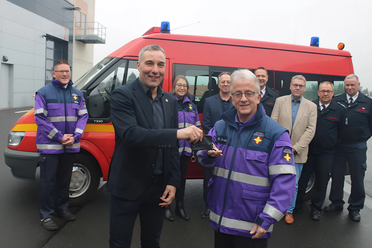 Den Wunsch nach einem eigenen Fahrzeug hat auch die Leitung der Bad Salzufler Feuerwehr wahrgenommen. Es entstand schnell die Idee, einen zur Ausmusterung anstehenden Ford Transit an die Notfallseelsorge abzugeben. Nach Beratung mit Bürgermeister Dirk Tolkemitt wurde aus der guten Idee eine handfeste Unterstützung durch die Stadt Bad Salzuflen. Passend zu Heiligabend konnte der feuerrote Transit an die lippischen Notfallseelsorger überreicht werden.