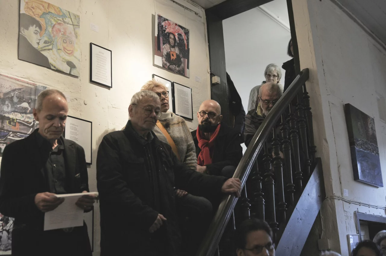 „Wir hatten so viel Publikum, dass wir die Eröffnung entgegen unserer normalen Praxis ins Foyer verlegen mussten“, berichtet der Fachwerk-Vorsitzende Carsten Timm. Und dieses Publikum wurden neben Bildern und Skulpturen auch zahlreiche Gedichte und Kurprosatexte präsentiert.