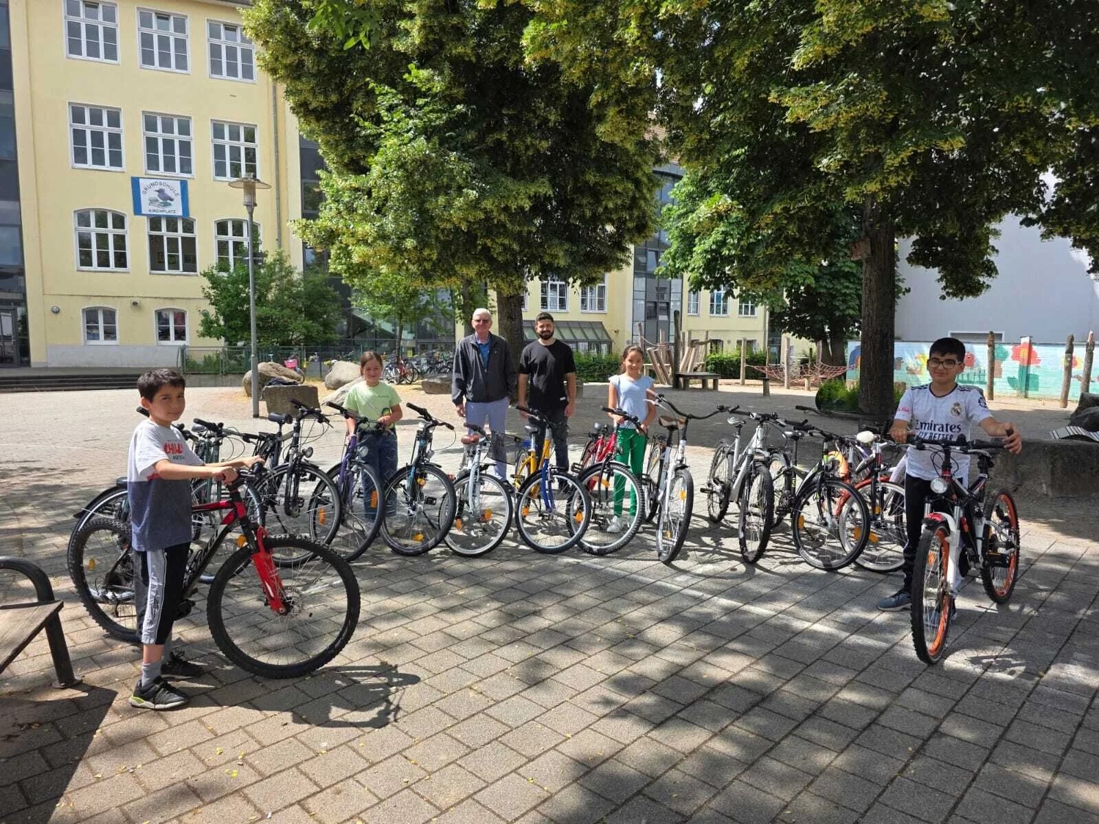 Bad Salzuflen-Schötmar. Über eine großzügige Spende freut sich die Grundschule Kirchplatz in Schötmar. Helmut Becker und Srour Khalaf vom Kinderschutzbund Bad Salzuflen überreichten jetzt 15 Fahrräder und 10 Fahrradhelme. Jedes Jahr durchlaufen an der Schule die Viertklässler die Radfahrausbildung, die mit Unterstützung der Polizei über die Bühne geht.