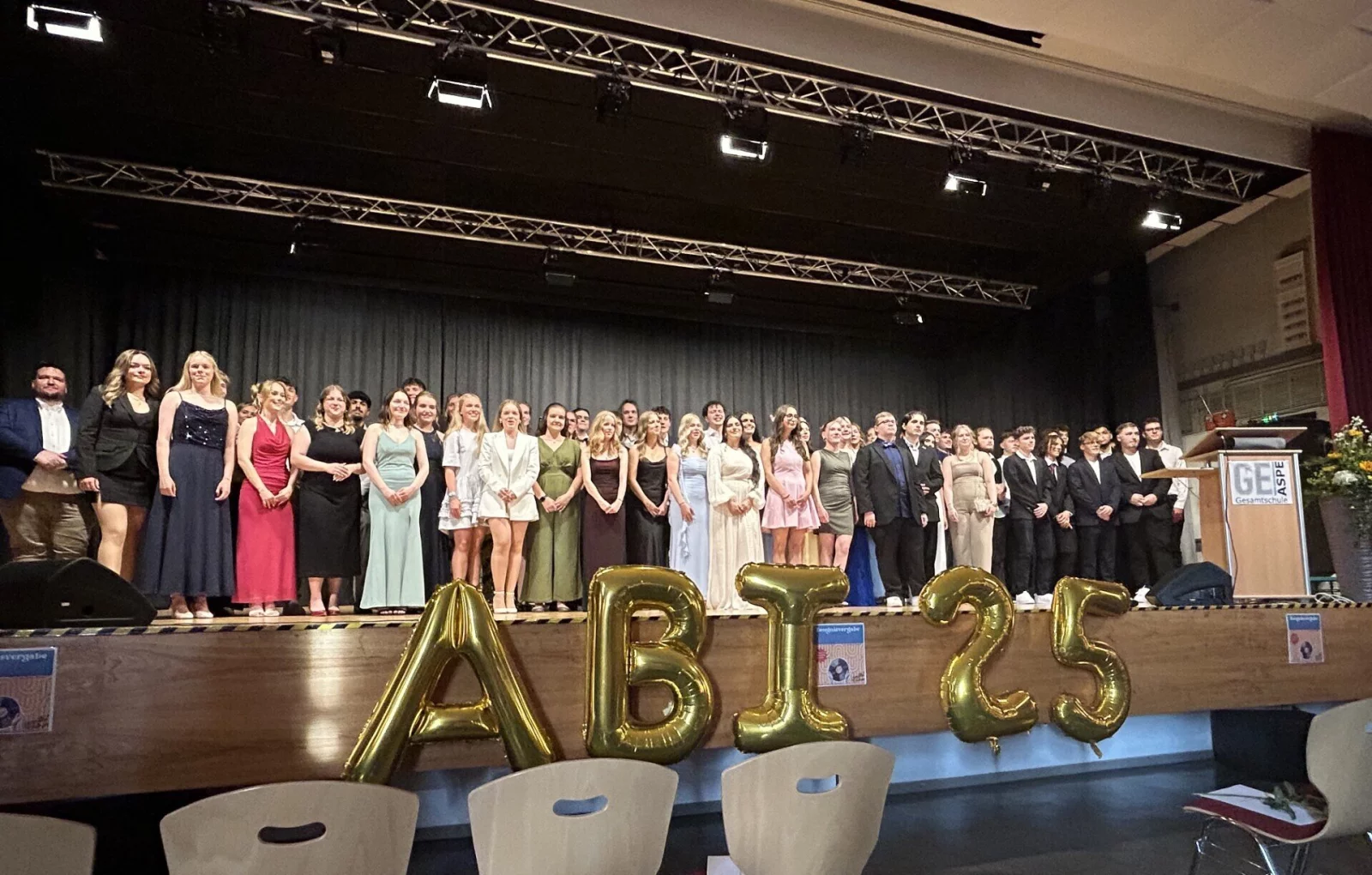 Bad Salzuflen/Werl-Aspe. Feierlich ist der Abiturjahrgang 2025 der Gesamtschule Aspe in der Aula verabschiedet worden. Die glücklichen Absolventen wurden laut einer Pressemitteilung von Bürgermeister Dirk Tolkemitt und anschließend von Schulleiter Oliver Dudek begrüßt und zu ihrer bestandenen Prüfung beglückwünscht.
