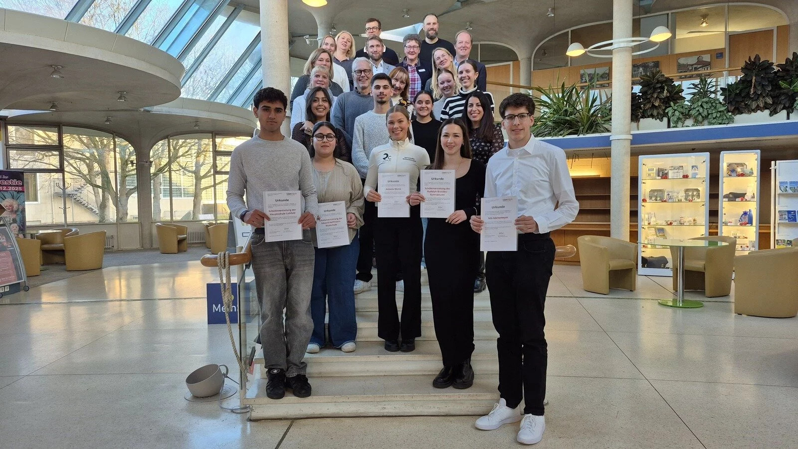 Der dritte Hauptpreis ging an die Schülervertretungen des Rudolph-Brandes-Gymnasiums, der Eduard-Hoffmann-Realschule und der Hauptschule Lohfeld. Zum 50-jährigen Bestehen des Schulzentrums Lohfeld organisierten sie gemeinsam das große Schulfest – von der Programmgestaltung über die Koordination der zahlreichen Mitwirkenden bis zur Durchführung auf dem gesamten Gelände. Ihr gemeinsames Engagement trug maßgeblich dazu bei, dass die Jubiläumsfeier zu einem besonderen Tag für die gesamte Schulgemeinschaft wurde. Jede Schülervertretung erhielt 500 Euro.