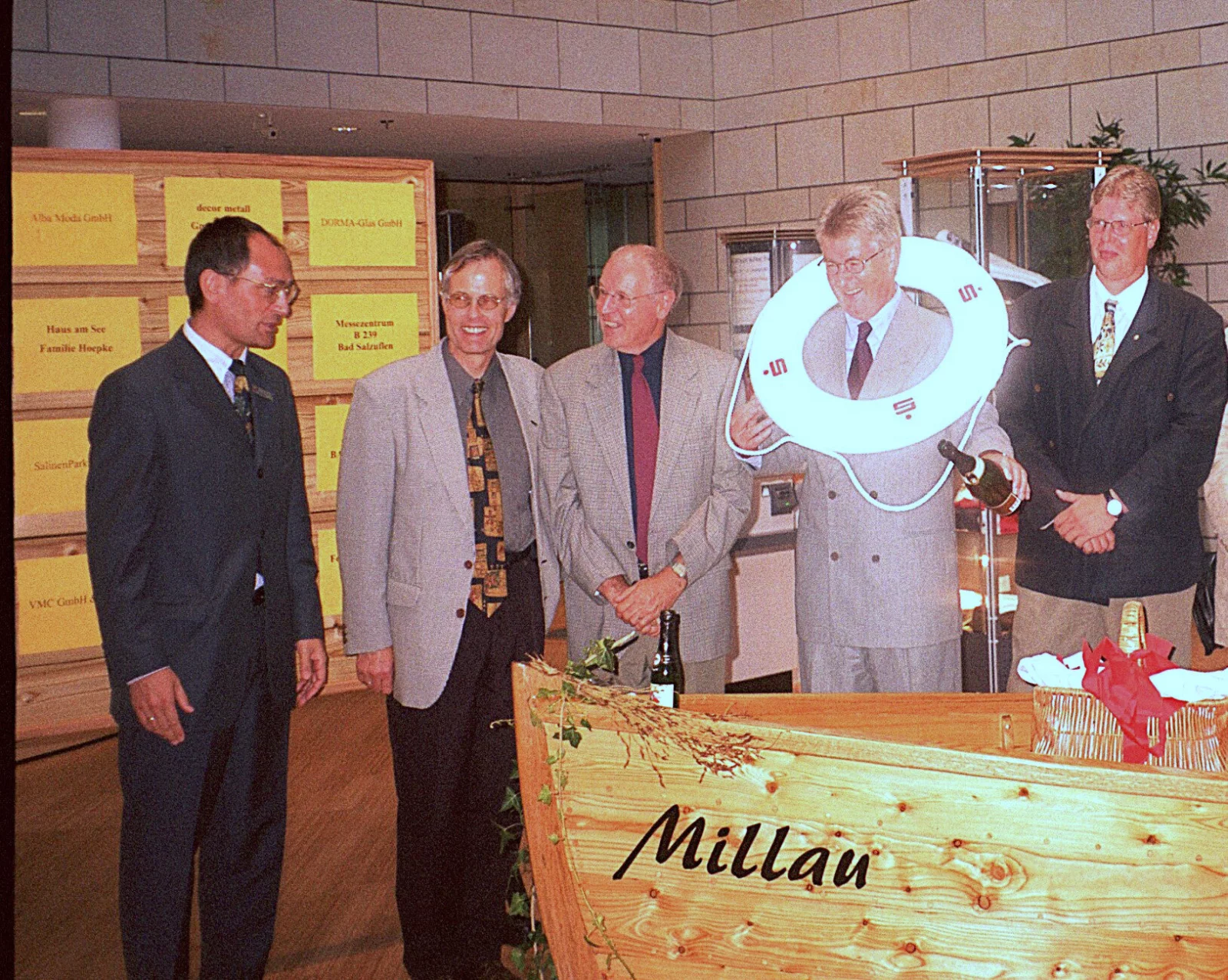 Bald galt es die Feiern zum 25-jährigen Jubiläum vorzubereiten. Gemeinsam mit Bürgermeister Gerhard Kleemann weihte Claude Lacombe zur Jahrtausendwende das erste im Rahmen einer Bildungsmaßnahme des Vereins AWB geschaffene Holzruderboot für den Kurparksee ein, begleitete die südfranzösischen Gäste auch zur Expo 2000 nach Hannover.