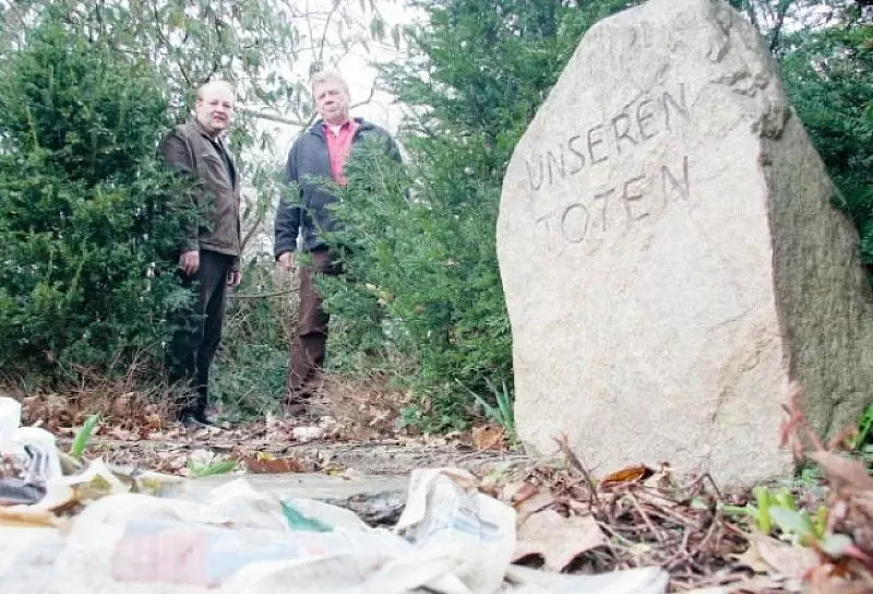 Bad Salzuflen/Ehrsen-Breden. Auf ein Tauschgeschäft haben sich die Stadt und der Ehrser Turn- und Sportverein verständigt: Handwerker versetzen den Gedenkstein, roden Hecken, aus der Stadtkasse werden zudem Gehwegplatten bezahlt, um das Mahnmal am neuen Standort einzufassen. Die Pflege übernimmt zukünftig der Verein. "Direkt an der Laufbahn auf dem Sportplatz geht das Denkmal derzeit etwas unter", begründet Vorsitzender Carsten Schwarze die Initiative des Turn- und Sportvereins. Sein Ziel: Das Mahnmal für die Opfer der beiden Weltkriege soll mehr ins Licht gerückt werden, an einem neuen Standort. "Momentan fliegt beim Training auch mal ein Ball dagegen. Das lässt sich zwar nicht vermeiden, ist aber nicht angemessen", findet Ortsausschussvorsitzender Michael Hinke.Zumal die Hecken Sichtschutz bieten - der Platz vor dem Stein wird daher als Ablageplatz für Müll missbraucht.