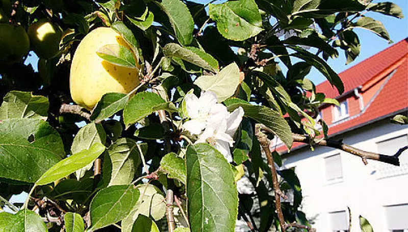 Dort hängen Äpfel neben Blüten. Nach Auskunft von Rainer König von der Baumschule Spilker ist dieses Phänomen derzeit allerdings häufiger anzutreffen. "Einige unserer Kunden haben schon Ähnliches berichtet. Vielleicht hängt das mit den extremen Witterungsverhältnissen in diesem Jahr zusammen", sieht der Experte ein Grund in dem sehr trockenen Frühjahr.