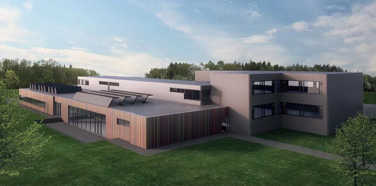 „Grün, Gelb, Rot ist ein Farbkonzept, das sich auch durch das gesamte Gebäude zieht", erläuterte Barntrups Bauamtsleiter Franz-Joachim Kuhs die ganzheitliche Farbgestaltung des zukünftigen Mehrfunktionen-Gebäudes, das sowohl als Schule dienen als auch im integrierten Bürgerforum für öffentliche Veranstaltung genutzt werden soll. Der Umbau hat vor einigen Wochen begonnen. Die drei Farben wiederholen sich in den Innenbereichen des Gebäudes. Kuhs: „Grün ist der schulische Bereich, Gelb der Bereich der Mehrfachnutzung sowie der Treppe und Rot wird die Empore mit dem Bürgerforum." Dazu gesellt sich ein neutrales Grau für Nebenräume und die Sanitäranlagen, die mit grauen Bodenfliesen zu hellen Wänden mit farblichem Abschluss ausgestattet werden. Der Strichcode-Look der Außenfassade wiederholt sich auch in Teilen des Innenwandanstrichs.