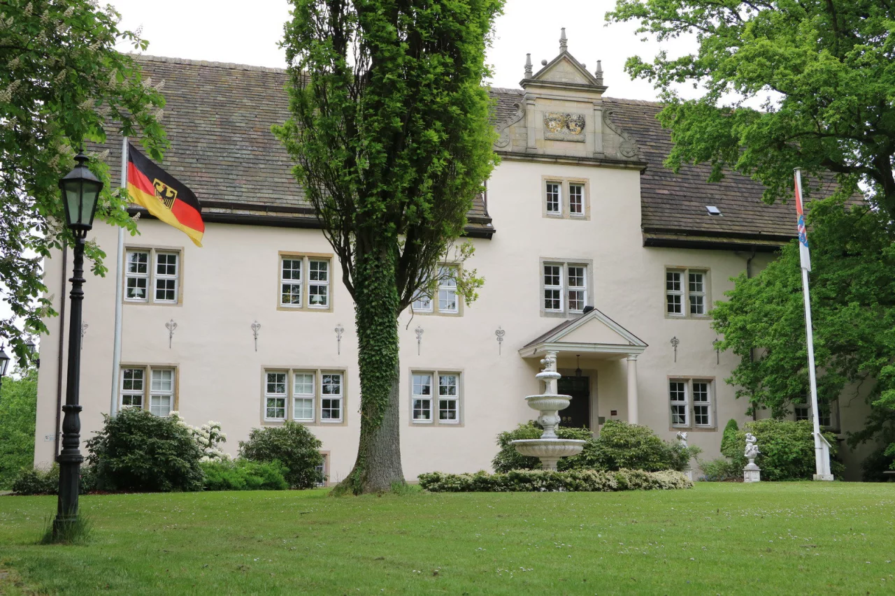 „Wir haben das Schloss 2008 erworben und zu großen Teilen renoviert", sagt Rainer Terschluesen. Der Unternehmer hat das Gebäude im Weserrenaissance-Stil als Sommersitz genutzt. Sein eigentlicher Wohnsitz ist in Den Haag. „Das Schloss hier war für mich günstig gelegen. Zwischen meinen Unternehmenssitzen in Hamburg, Düsseldorf und Den Haag konnte ich so immer gut pendeln", meint der Schlossherr. Da er nun beruflich etwas kürzer trete und insgesamt weniger unterwegs sei, sei der Sitz aber zu weit von seiner eigentlichen Heimat entfernt. Um das etwa 8350 Quadratmeter große Grundstück samt Gebäude zu verkaufen, hat Terschluesen Bernd Neuhäuser beauftragt.