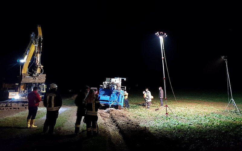 "Zum Glück waren nur geringe Mengen Öl und Diesel ausgelaufen, die in Eimern aufgefangen werden konnten", teilt die Feuerwehr mit. Die Wehrleute verhinderten im Verlauf der Bergung den möglichen Austritt von Betriebsmitteln und leuchteten die Einsatzstelle bei Einbruch der Dunkelheit aus.