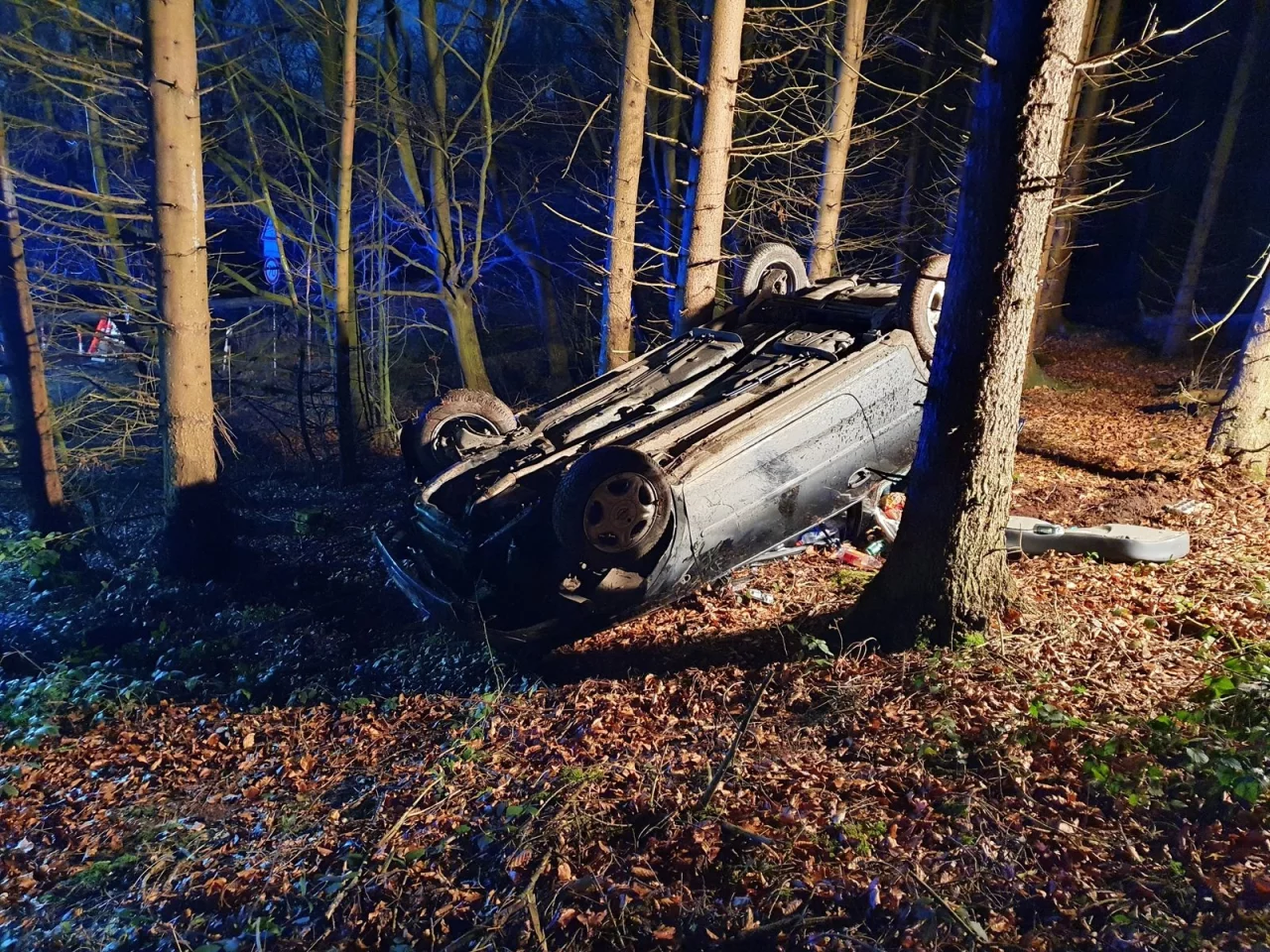 Barntrup/Extertal. Am Freitagabend kam es gegen 16.13 Uhr auf der Hummerbrucher Straße, zwischen Alverdissen und Bösingfeld, zu einem spektakulären Alleinunfall. Ein 25-Jähriger aus Extertal war mit seinem Opel Corsa von der Straße abgekommen. Das Fahrzeug überschlug sich und landete etwa 20 Meter abseits der Straße auf dem Dach liegend im Wald.
