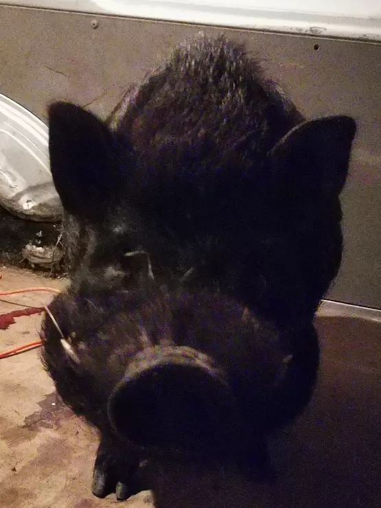 Die Polizeibeamten stellten sehr schnell fest, dass es sich nicht um ein Wildschwein, sondern ein männliches schwarzes Hängebauchschwein handelte. Mangels Ohrmarke konnte der Besitzer des Tieres vor Ort nicht ermittelt werden. Per Telefon-Rundruf wurde für die Übergangszeit bis das Veterinäramt sich am nächsten Tag um das Tier kümmern würde, eine Bleibe gesucht.