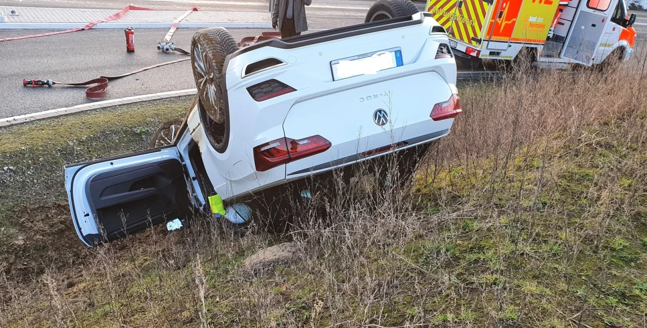 Das Notrufsystem des Fahrzeuges hatte daraufhin einen Alarm ausgelöst, wie die Feuerwehr mitteilt. Als die Kameraden vor Ort eintrafen, hatte sich der Fahrer schon aus dem Fahrzeug befreien können und war von Ersthelfern vorbildlich versorgt worden, wie die Wehr berichtet. Die Einsatzkräfte sicherten die Einsatzstelle ab und stellten den Brandschutz sicher. Bis zur Bergung des Fahrzeugs war der Kreisel halbseitig gesperrt. Die Untersuchungen zum Unfallhergang laufen noch.