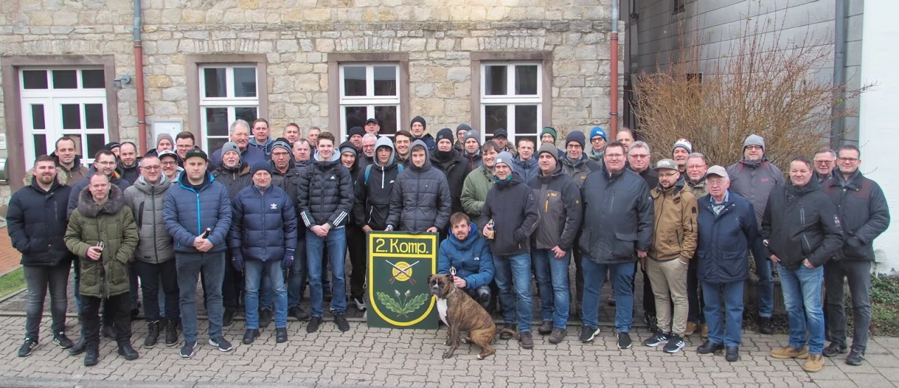 Barntrup-Alverdissen. Über etwa 55 Teilnehmer an der Winterwanderung freut sich die 2. Kompanie ("Kaiserjäger") der Schützen Alverdissen. Hauptmann Dieter Düwel hatte laut einer Pressemitteilung der Schützen zum Start zu sich zu Hause eingeladen. Von dort ging es bei gutem Wanderwetter auf eine Tour rund um Alverdissen. Eine längere Rast wurde am Sportplatz Alverdissen eingelegt. Andreas Milewski hatte hier die Versorgung per Grill übernommen. Weiter ging es zur Mehrzweckhalle Alverdissen, wo der Veteranen-Stammtisch bereits eingerichtet war und zehn Personen zur Wandergruppe dazukamen. Unter den Gästen weilte König Wigand Schulze aus Alverdissen. Vom Bataillonsvorstand waren Vorsitzender Willi Düwel, Oberst Jörg Kleemann, 2. Vorsitzender Sven Logermann und Schatzmeister Eckhard Marohn mit von der Partie.