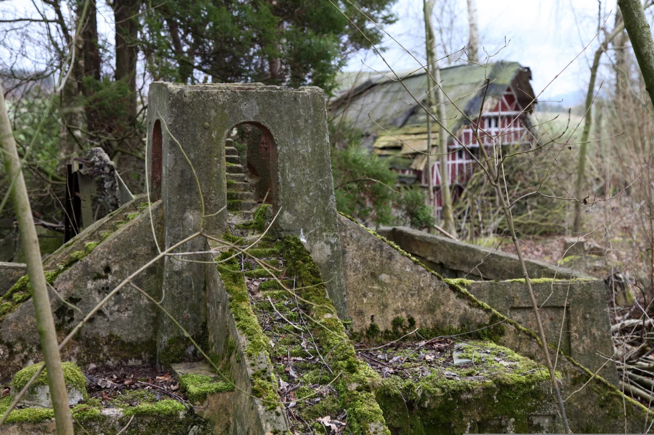 Es scheint fast, als sei der Miniaturbau wie einige andere Relikte wie das rote Fachwerkhaus mit seinem Platz verwachsen. Somit bleiben zumindest ein paar Erinnerungen an Hermann Stephans einzigartiges Lebenswerk – bis die Natur ihnen eines Tages endgültig den Garaus macht.